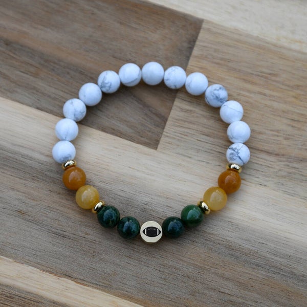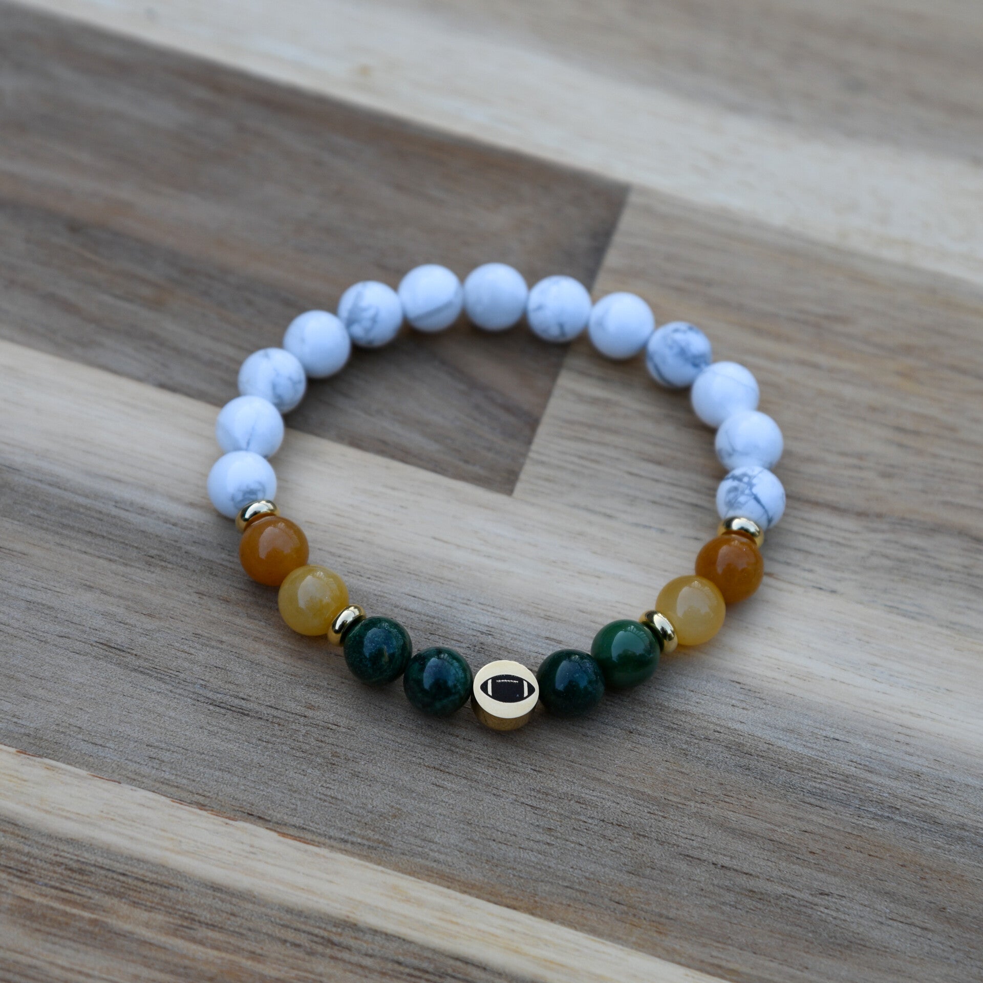 Football Bead with African Aventurine, Golden Jade, and Howlite