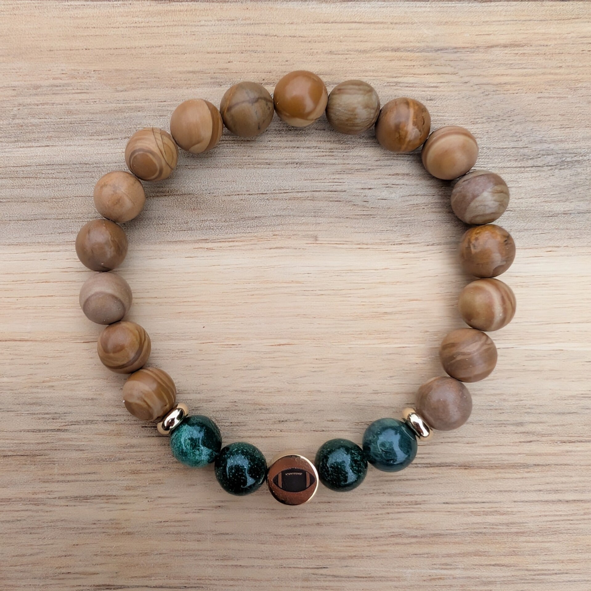 Football Bead with African Aventurine and Tigerskin Jasper