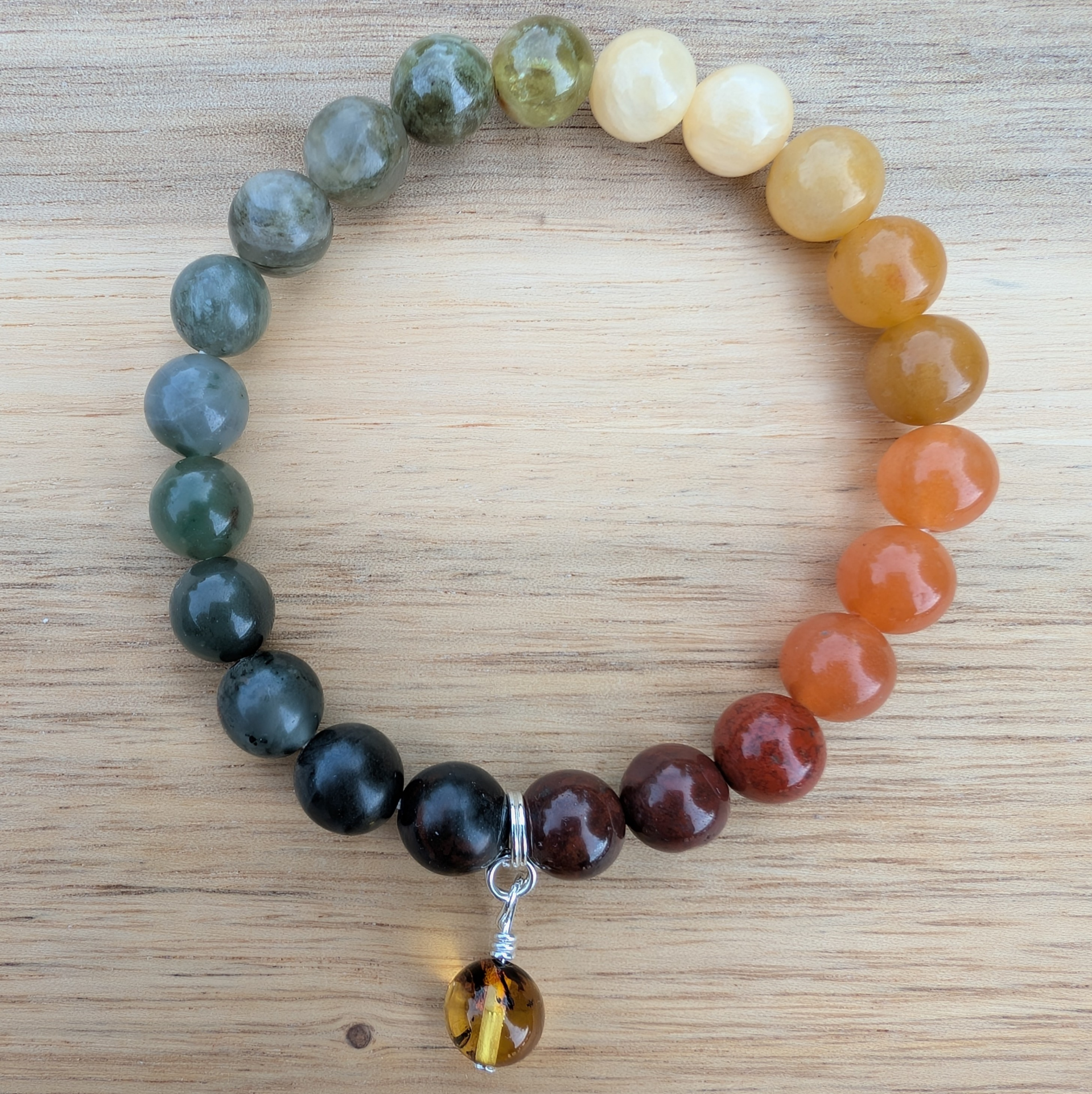 This 8mm natural gemstone change of seasons inspired bracelet features: