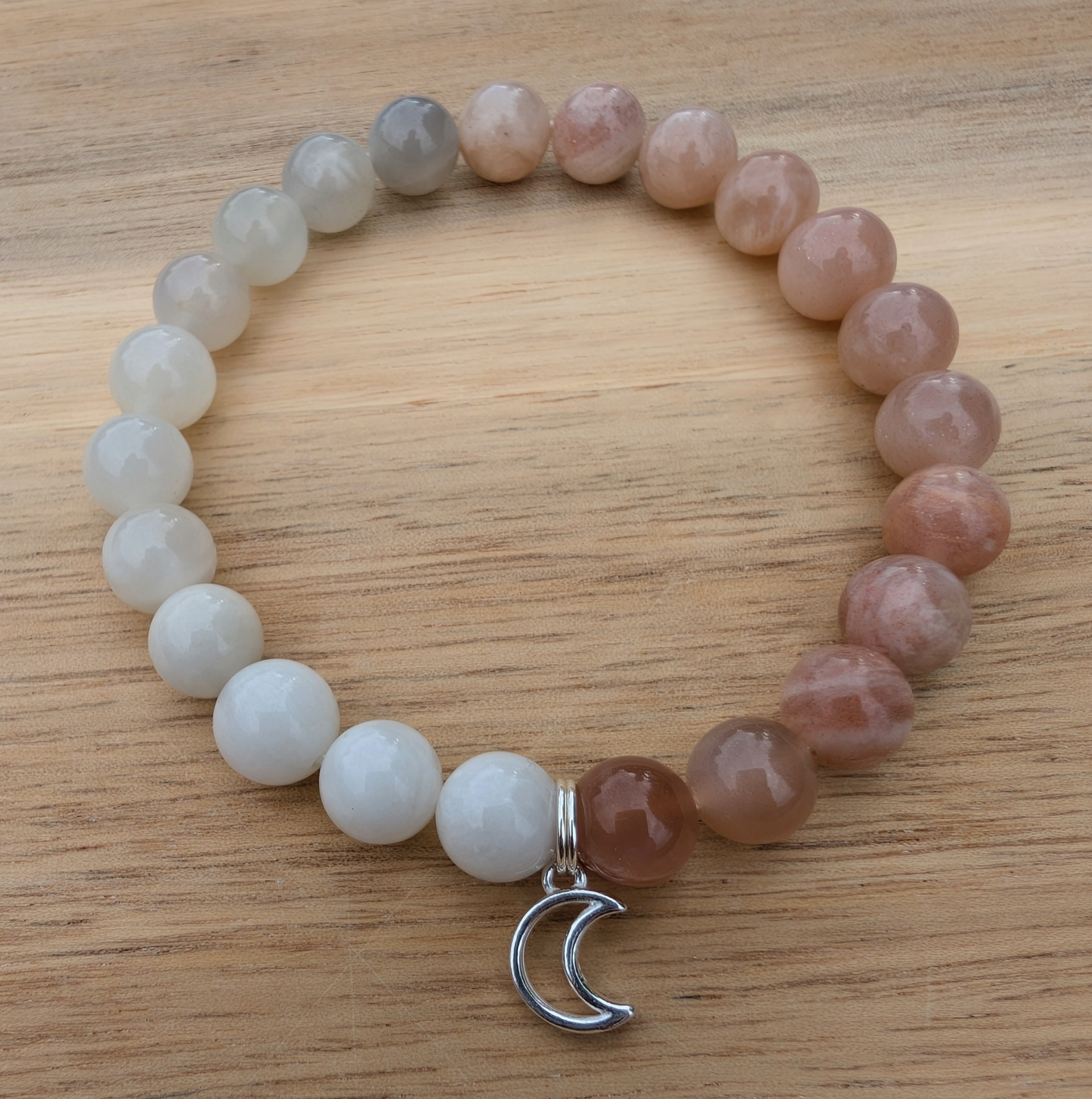 Multicolor Moonstone with Sterling Silver Moon Charm